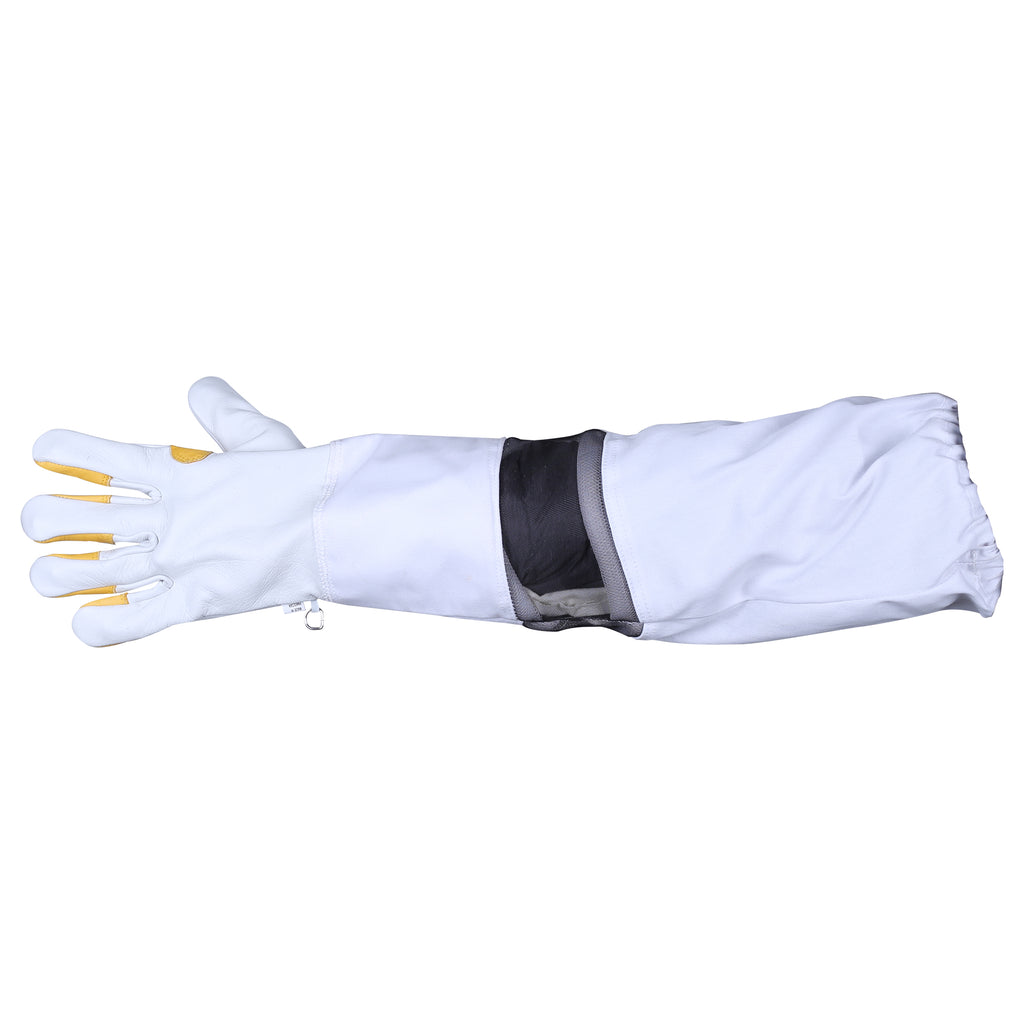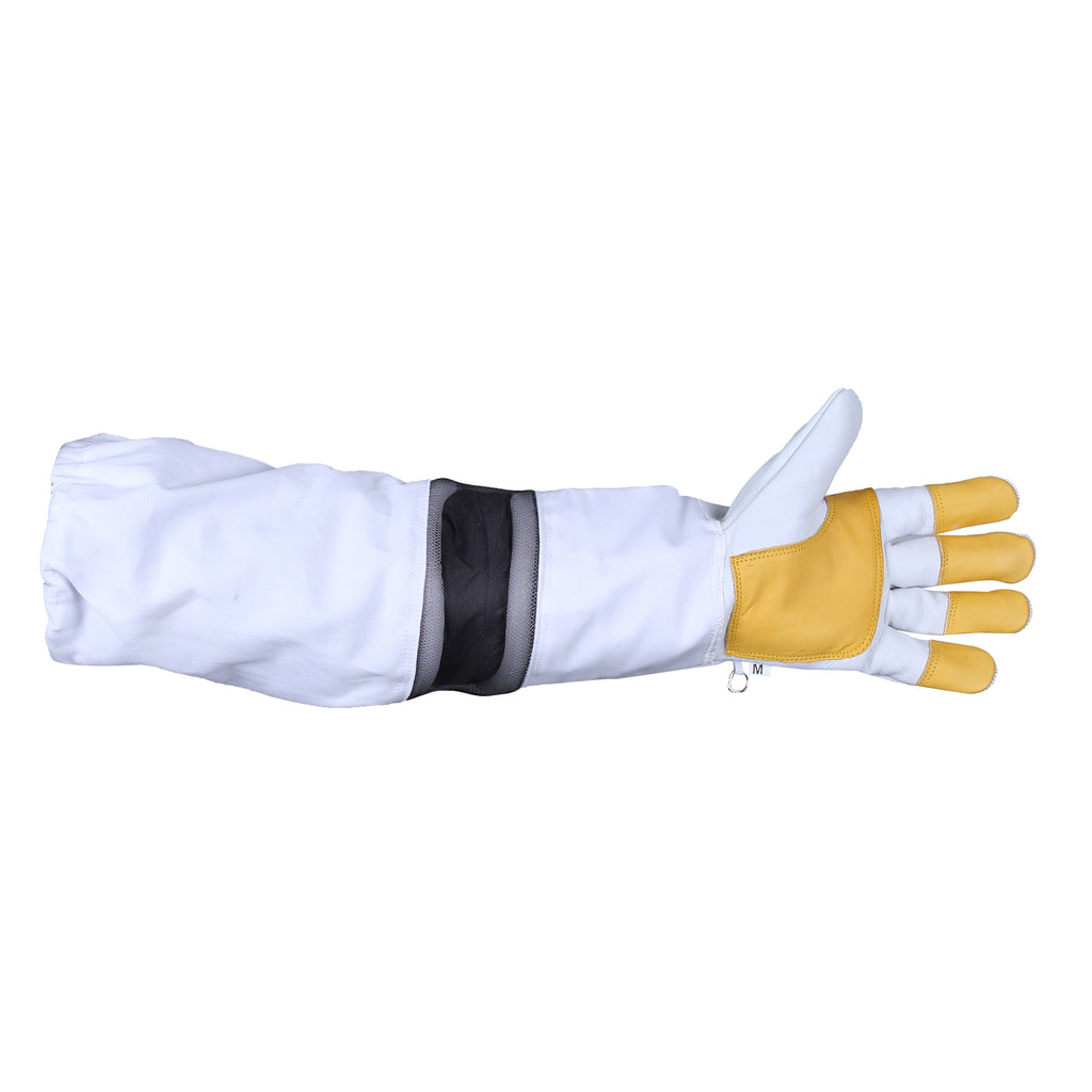These gloves are durable canvas material with High Quality Cowhide leather hands for the ultimate protection. These beekeeping gloves feature extra-long sleeves that protect you right up to your elbow. Unisex design for men and women. Elastic keeps bees from getting into your suit.