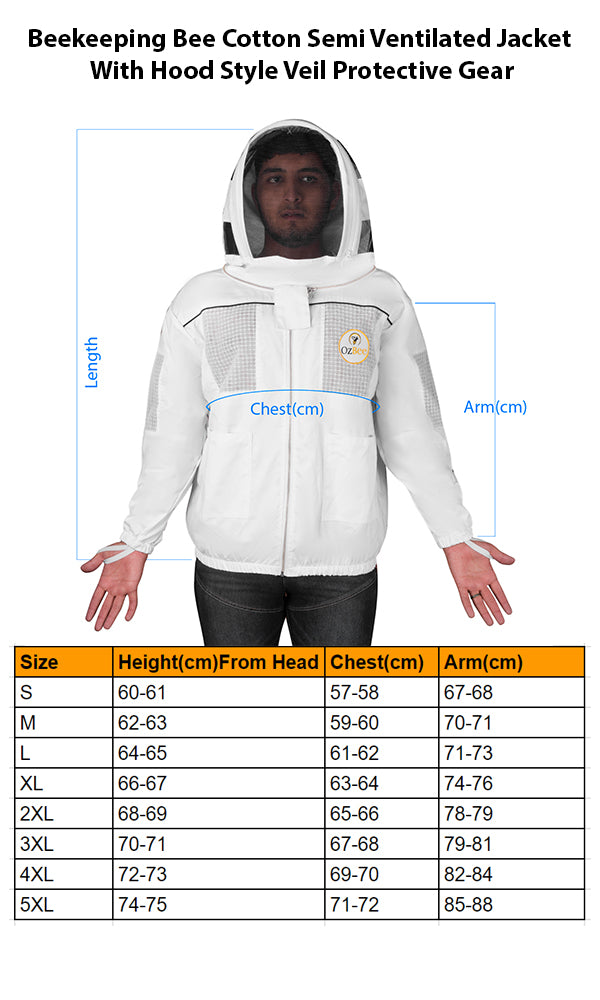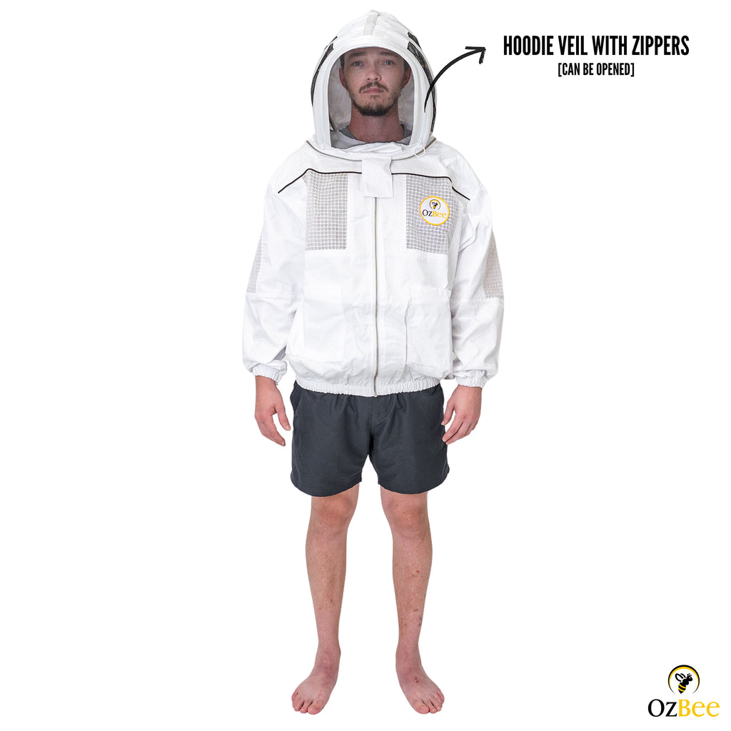 Beekeeping Bee Cotton Semi Ventilated Jacket With Hood Style Veil - Sting-Free Vibes