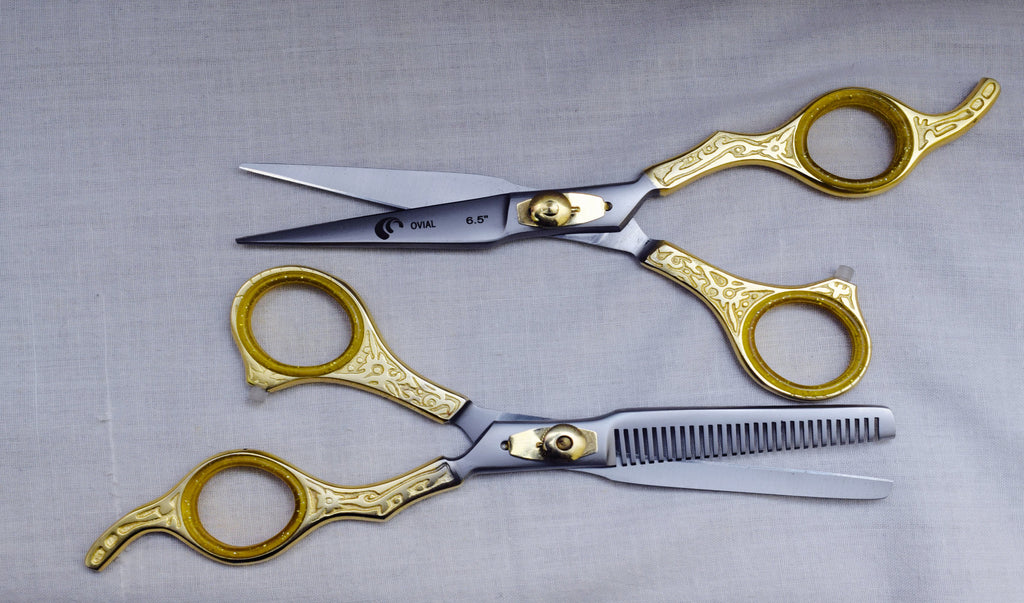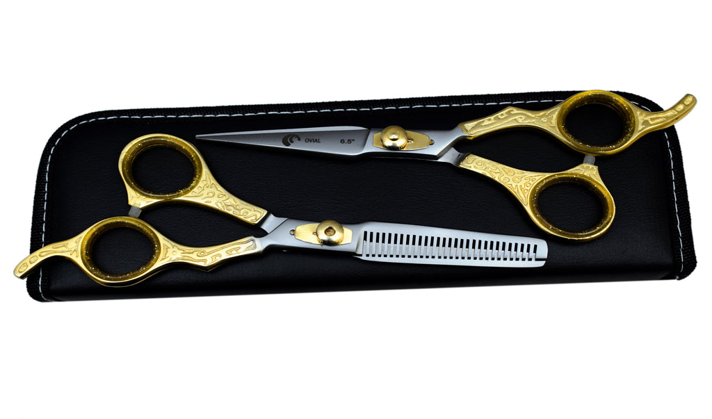 Ovial Carved - 24Kt Gold Plated Thinning & Trimming Scissors Set 6.5"