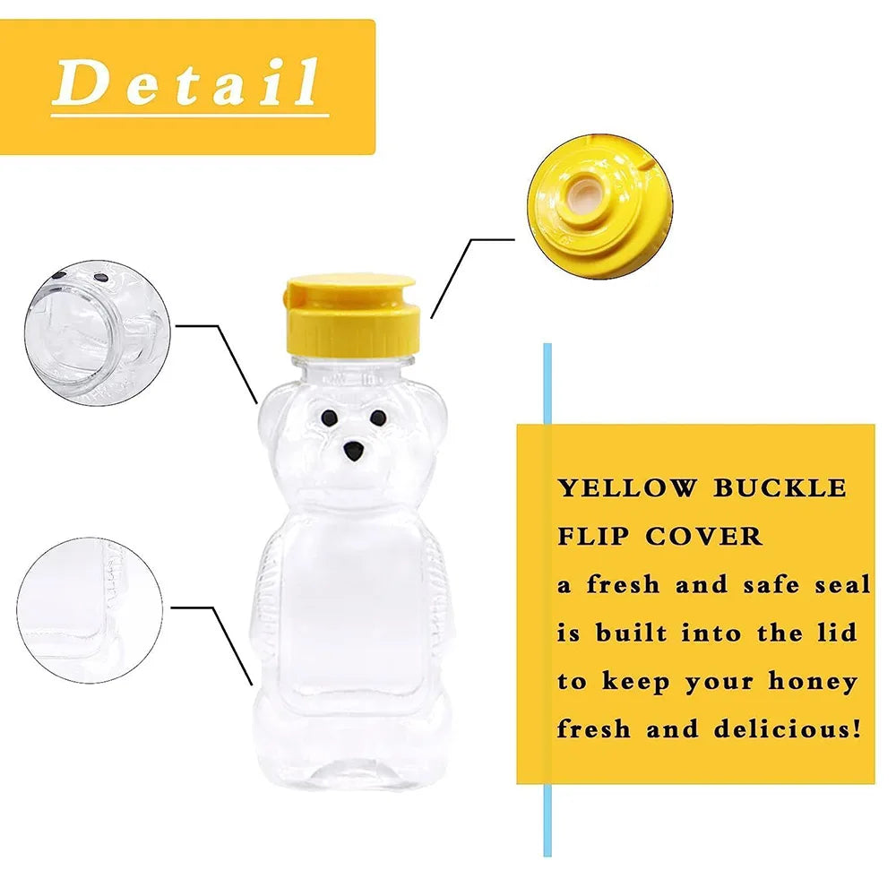 ✅【Leak-Proof Bear Honey Bottles】- Flip-top cap with inside pressure sensitive liner create an airtight seal for maximum freshness, the honey containers honey dispenser ensure your honey stay fresh and clean for ready to sale. Flip-top caps fit the plastic honey jars mouth tightly to prevent liquid leakage.