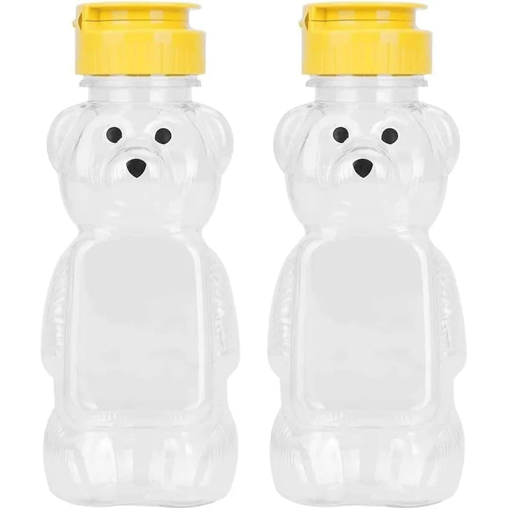 ✅【Attractive Honey Bear Bottle】- These plastic honey bottles honey pot juice bottles are designed in bear shape with cute little face, make your honey look more delicious and attractive. These plastic bottles are perfect for keeping honey or syrup for cooking in your kitchen, home use, serving for wedding, birthday parties and events.
